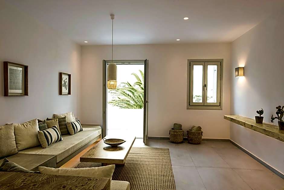 On Mykonos' Main Street, just from the city center, lies an adults-only, four-star retreat that blends island charm with modern comfort. A seasonally open outdoor saltwater pool invites a refreshing dip, while spa and wellness packages unwind tired travel legs. In the evenings, free live music performances set a relaxed, celebratory mood, complemented by reliable free WiFi to share the moment.